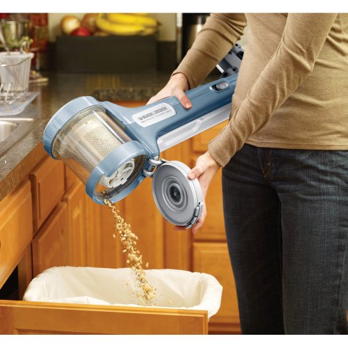 With 18 Volts of power, the Black & Decker PSV1800 Pivot Floor Vac has the performance of a corded vac that allows it to tackle tough messes around the home. It’s exclusive Pivoting Action provides easy reach when cleaning under furniture, and On/Off motorized brush roll allows its use on carpets & hard surfaces while an innovative side suction system permits edge cleaning along baseboards & walls. Cyclonic Action and 3 a 3 stage filtration system keeps the filter clean so suction power stays strong and air exhaust stays clean. The bagless dirt canister for allows for easy, no-mess emptying. The PSV1800 is Energy Star approved and folds in half for compact charging & storage. The PSV1800 - cordless & lightweight for grab & go convenience.